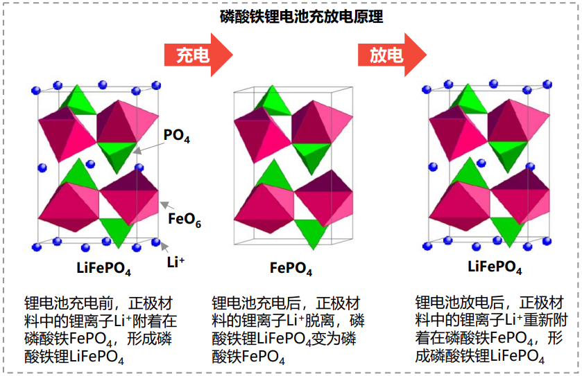 當(dāng)鋰電池放電時(shí),Li+從負(fù)極材料中脫離,穿過(guò)電池隔膜和電解液后回到正極材料,F(xiàn)ePO4在Li+嵌入后變回LiFePO4 ,完成放電過(guò)程。03-29